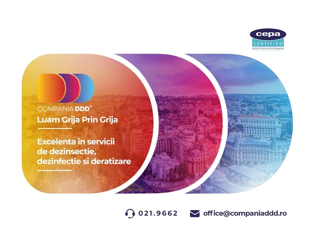 Compania DDD® s-a impus ca unul dintre cei mai de încredere parteneri în domeniul serviciilor profesionale de Dezinsecție, Deratizare și Dezinfecție (DDD). Cu o experiență de peste 14 ani, compania românească furnizează soluții complete pentru sectorul corporate și instituțional, fiind prima firmă din România certificată CEPA 9, standard european de referință în domeniul controlului dăunătorilor.